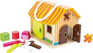 Aυτό το ξύλινο σπίτι είναι εκπαιδευτής κινητικών δεξιοτήτων. Κάθε κλειδί χωράει σε μία πόρτα. Μένουν ανοιχτά με τα λαστιχάκια. Τα τουβλάκια έχουν διαφορετικά σχήματα που πρέπει να τοποθετηθούν στο σωστό άνοιγμα. Ένα κορδόνι χρησιμεύει για μεταφορά. Πρακτικό μέγεθος κατάλληλο για μεταφορά! Διάσταση : Σπίτι 20 x 16 x 15 cm Κλειδί 7.5 x 4.5 x…