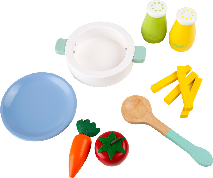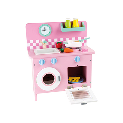 Σχεδιασμένη σε παστέλ χρώματα, αυτή η προσεγμένη παιδική κουζίνα προσφέρει στους μικρούς μάγειρες φανταστικό παιχνίδι! Aποτελείται από έντεκα αξεσουάρ! Μπορεί εύκολα να μεταφερθεί στο εξοχικό της γιαγιάς και του παππού! Διαστάσεις: Περίπου 40 x 21 x 45 cm Ύψος εργασίας περίπου. 29 cm