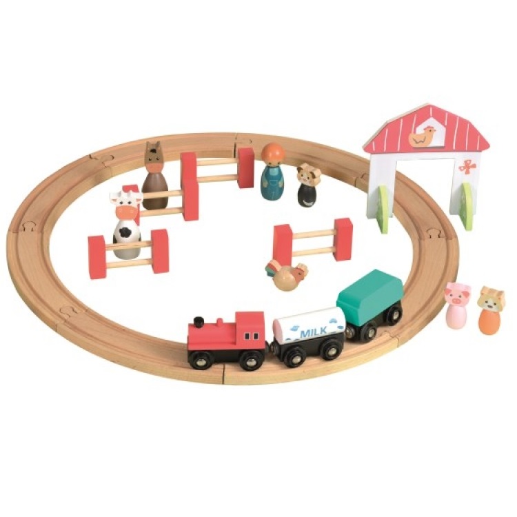 Αμέτρητες ώρες παιχνιδιού όταν μπορείς να συνδυάσεις το τραίνο με τη φάρμα! Τοποθέτησε τις ράγες, το τραίνο, τη φάρμα και τα ζώα όπου εσύ θέλεις και φτιάξε τη δική σου ιστορία! Στο σετ εμπεριέχονται: Ξύλινες Ράγες 1 μηχανή τραίνου & 2 βαγόνια 4 κάγκελα 1 αγρότης 6 ζωάκια 1 πύλη φάρμας 3+