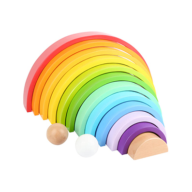 Αυτό το ουράνιο τόξο περιλαμβάνει δύο ξύλινες μπάλες από σταθερό ξύλο και είναι βαμμένο σε έντονα χρώματα. Στοιβαγμένο μαζί, είναι πραγματικά εντυπωσιακό στο ράφι, αλλά η πραγματική διασκέδαση στο παιχνίδι εμφανίζεται με τις πολυάριθμες δυνατότητες παιχνιδιού του.