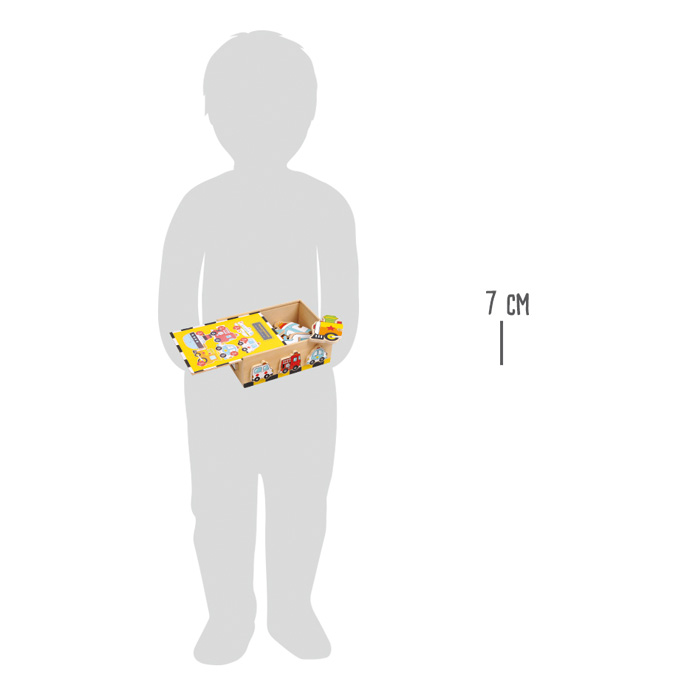 Το υπέροχο ξύλινο κουτί με το συρόμενο καπάκι περιέχει 6 παζλ από 2 έως 7 κομμάτια με διάφορα σχήματα! Διαστάσεις: 19 x 14 x 7 cm Μονό παζλ πυροσβεστικό όχημα περίπου. 13 x 14 x 0,5 εκ
