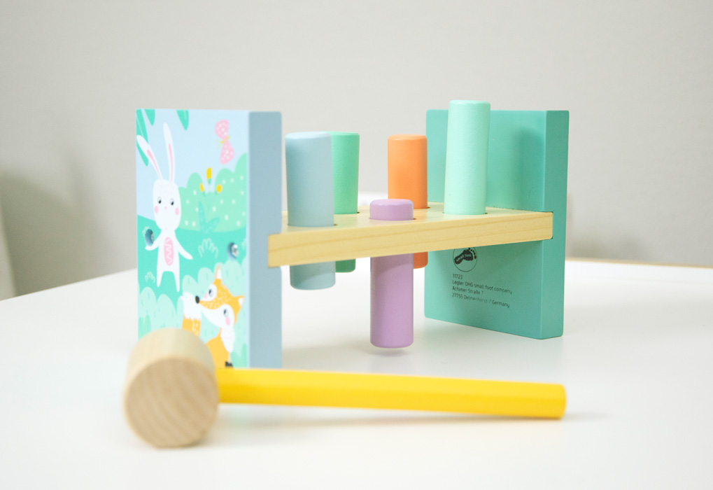 Ένα κλασικό παιχνίδι που εκπαιδεύει τον συντονισμό χεριού-ματιού και τις κινητικές δεξιότητες! Διαστάσεις: Πάγκος σφυρηλάτησης περίπου 22 x 9 x 12 cm Σφυρί περ. 17 x 5,5 x 3,5 cm
