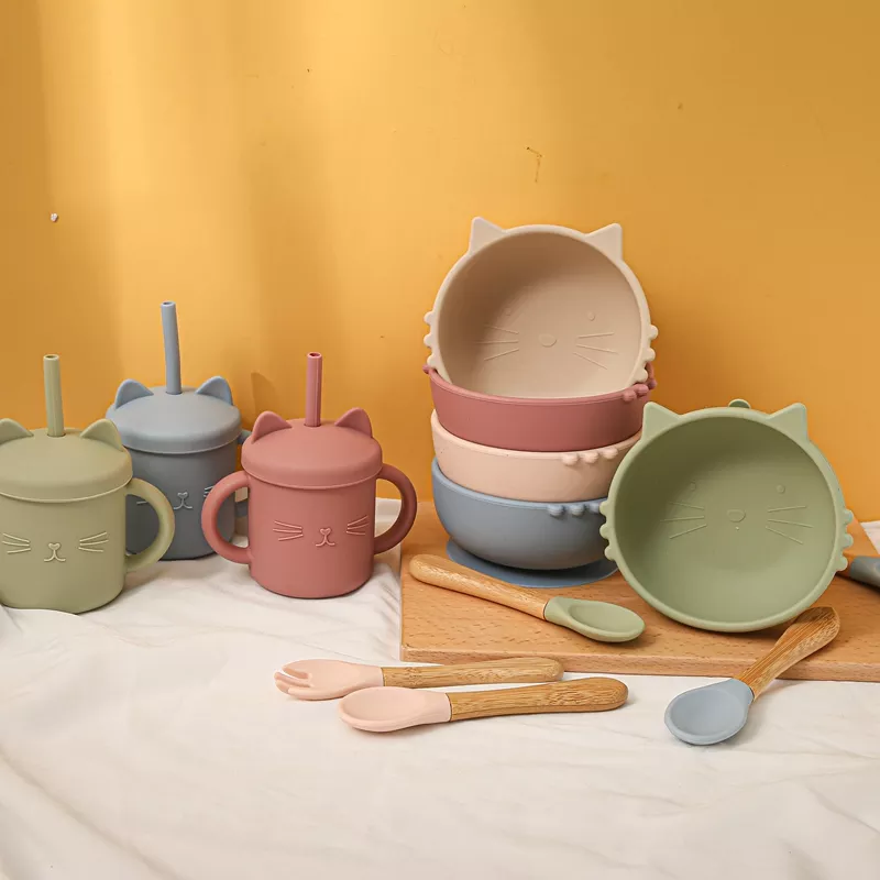 Το μπολ έχει βεντούζα ώστε να προσφέρει σταθερότητα και να μην μπορεί να το αναποδογυρίσει το παιδάκι. Το κουταλάκι είναι από bamboo και σιλικόνη. Το εκπαιδευτικό ποτηράκι έχει καλαμάκι και λαβές για να το πιάνει εύκολα το παιδάκι.