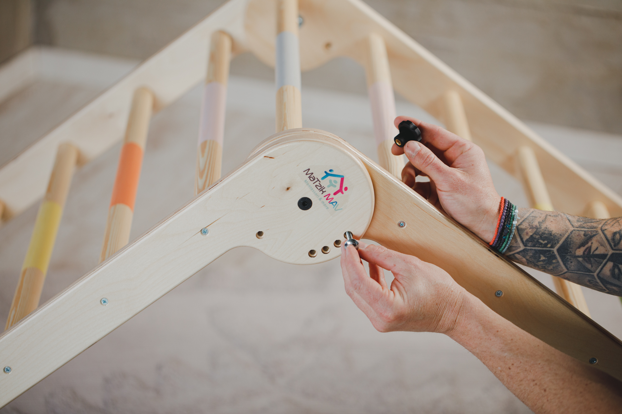 Το Τρίγωνο Αναρρίχησης είναι μία χειροποίητη, ξύλινη κατασκευή, σχεδιασμένη σύμφωνα με τις αρχές της παιδιάτρου Emmi Pikler. Επιτρέπει ελεύθερο εύρος κίνησης στο παιδί και παρέχει ένα ασφαλές περιβάλλον για να εμπνεύσει αυτοπεποίθηση και αυτονομία του σώματος. Ενισχύει τις κινητικές δυνατότητες, την ισορροπία και τη συγκέντρωση. Συμβάλει στην ενδυνάμωση και το συντονισμό μεταξύ των μελών του σώματος!