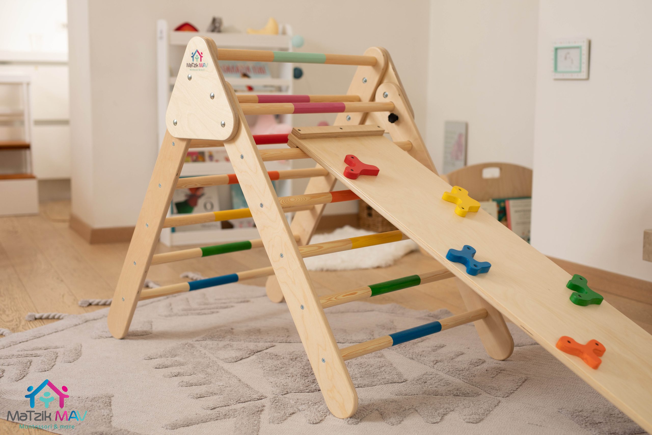 Το Τρίγωνο Αναρρίχησης είναι μία χειροποίητη, ξύλινη κατασκευή, σχεδιασμένη σύμφωνα με τις αρχές της παιδιάτρου Emmi Pikler. Επιτρέπει ελεύθερο εύρος κίνησης στο παιδί και παρέχει ένα ασφαλές περιβάλλον για να εμπνεύσει αυτοπεποίθηση και αυτονομία του σώματος. Ενισχύει τις κινητικές δυνατότητες, την ισορροπία και τη συγκέντρωση. Συμβάλει στην ενδυνάμωση και το συντονισμό μεταξύ των μελών του σώματος!