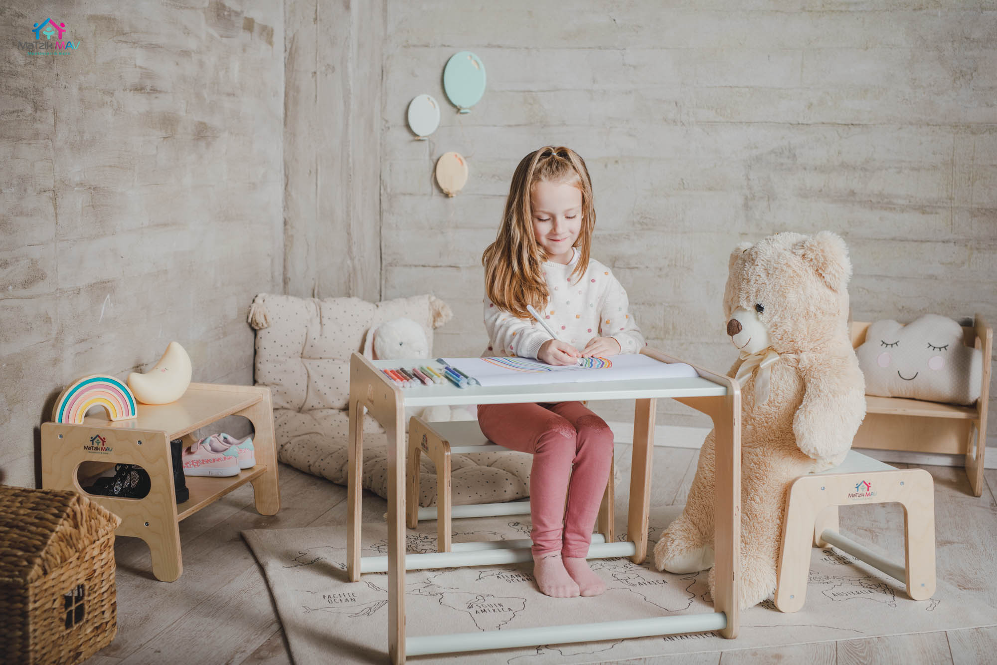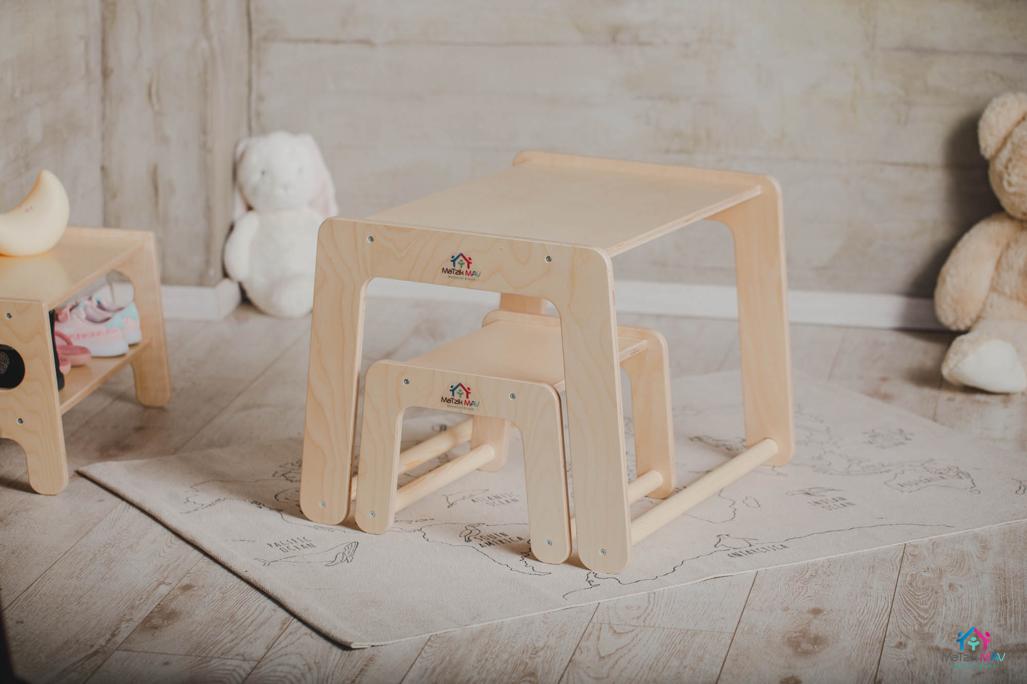 Ένα καινούριο όμορφο, χειροποίητο τραπέζι στο φυσικό χρώμα του ξύλου ήρθε να προστεθεί στη συλλογή μας! Μπορεί να  χρησιμοποιηθεί για την ώρα του φαγητού, για ζωγραφική ή κάποια άλλη δημιουργική απασχόληση! Από όταν αρχίζει να κάθεται μπορεί να το χρησιμοποιήσει. Συνολική Διάσταση: 53 x 61 x 46 Διάσταση καθαρού χώρου τραπεζιού : 40 x 58…