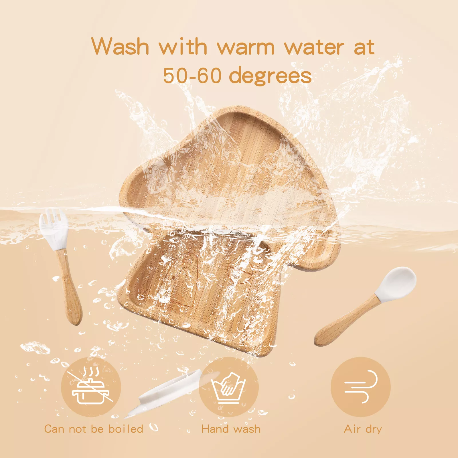 1. Τα σκεύη από μπαμπού μπορούν να πλυθούν μόνο στο χέρι και δεν μπορούν να μπουν σε πλυντήρια πιάτων και αποστειρωτές.