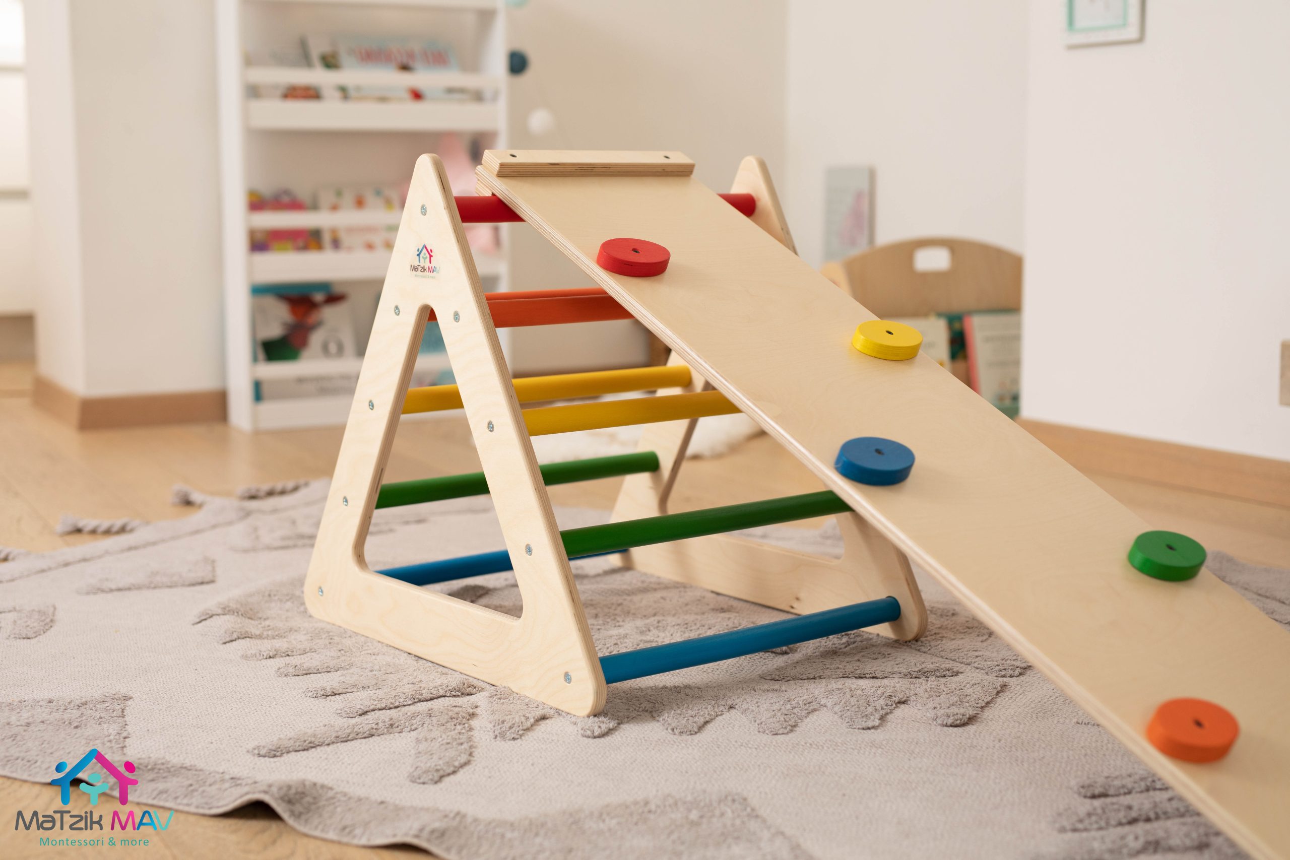 Το Τρίγωνο Αναρρίχησης επιτρέπει ελεύθερο εύρος κίνησης στο παιδί και παρέχει ένα ασφαλές περιβάλλον για να εμπνεύσει αυτοπεποίθηση και αυτονομία του σώματος. Ενισχύει τις κινητικές δυνατότητες, την ισορροπία και τη συγκέντρωση. Συμβάλει στην ενδυνάμωση και το συντονισμό μεταξύ των μελών του σώματος!