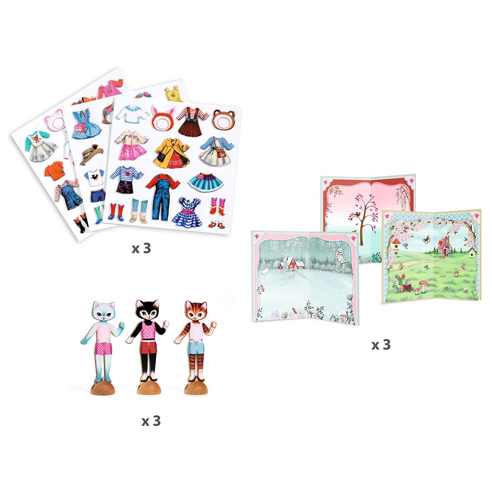 / Djeco Ντύνω με αυτοκόλλητα Ξύλινες Φιγούρες ‘Γατούλες’