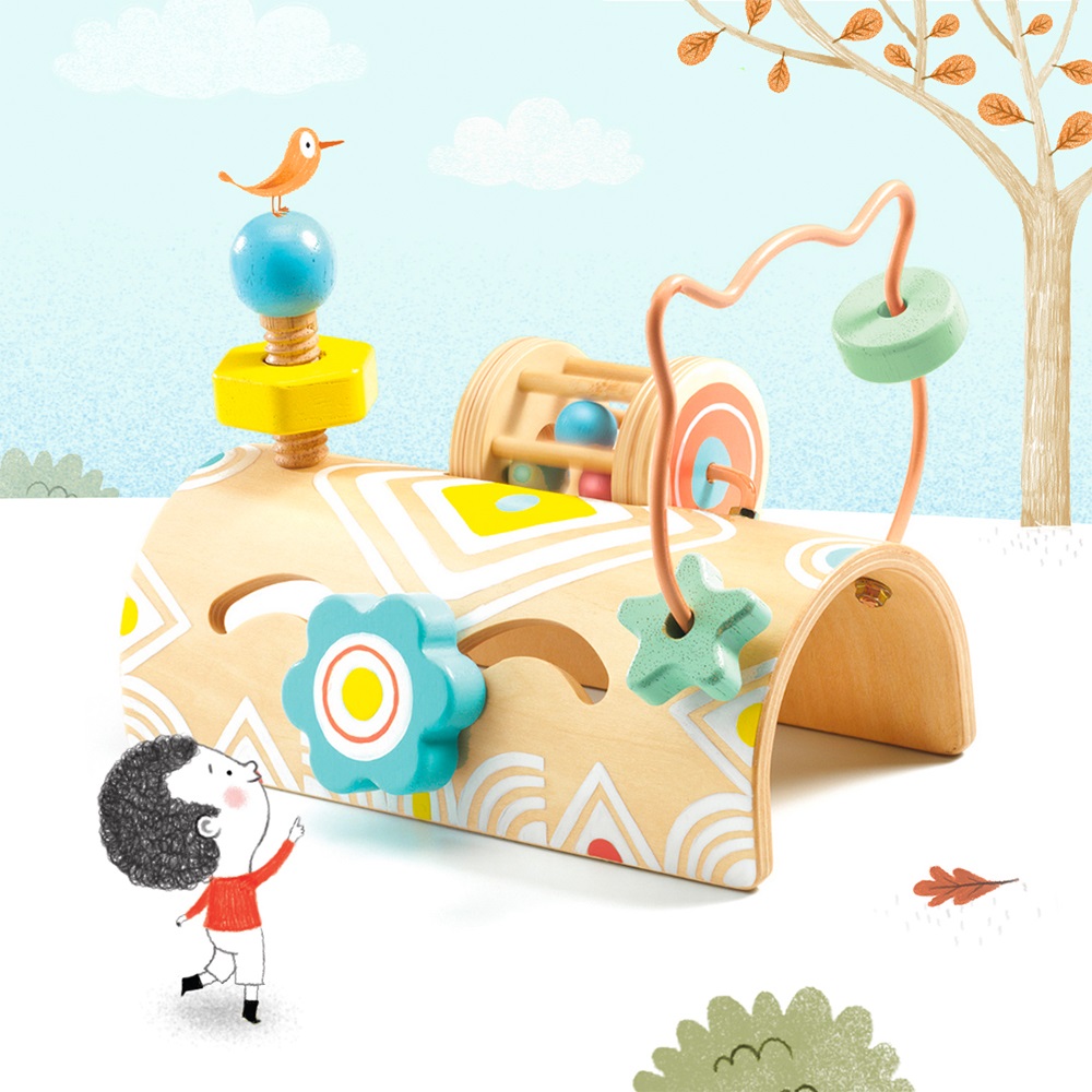 Από ασκήσεις προγραφής και λαβύρινθους μέχρι βιδώματα και στριφογυριστές κουδουνίστρες, αυτό το ξύλινο παιχνίδι πολυδραστηριοτήτων περιλαμβάνει οτι χρειάζονται οι μικροί μας φίλοι! Το εκπαιδευτικό παιχνίδι της εταιρίας Djeco προσφέρει διαφορετικά ερεθίσματα στο παιδί για να ανακαλύψει, ενώ βοηθά στην ανάπτυξη της λεπτής κινητικότητας και στον καλύτερο συντονισμό χεριού – ματιού.