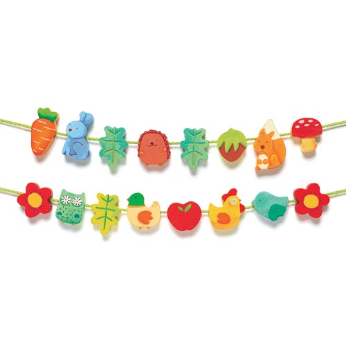 Παιχνίδι βελτίωσης της λεπτής κινητικότητας από την εταιρία Djeco. Τα παιδιά περνούν μέσα στο κορδόνι τα ξύλινα και τα υφασμάτινα αντικείμενα και δημιουργούν τις δικές τους συνθέσεις!
