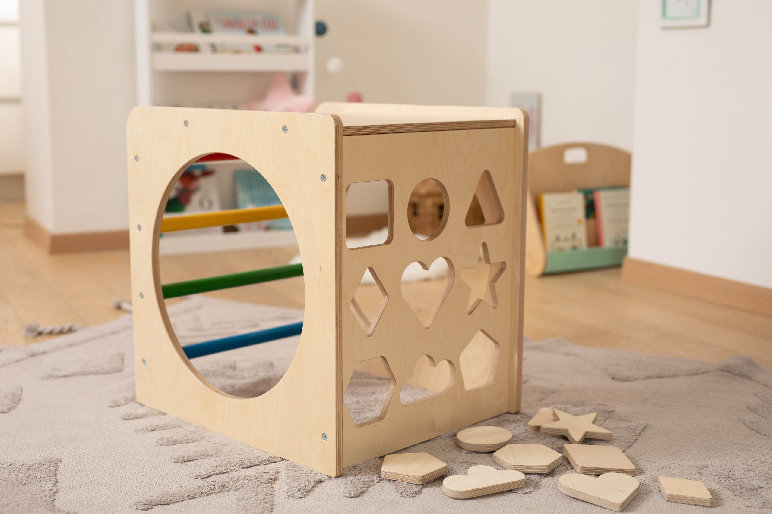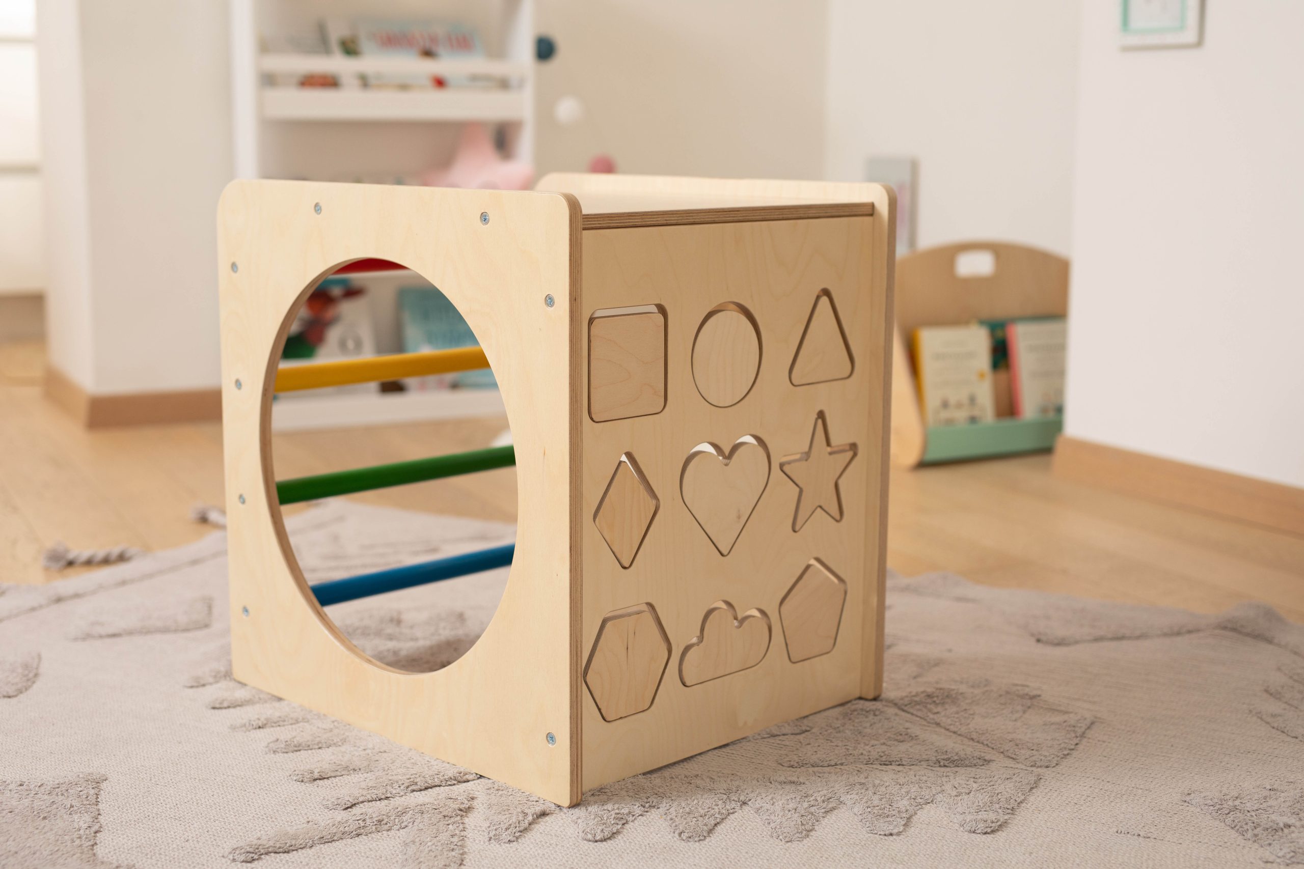 Ο κύβος περιλαμβάνει τα σχήματα τα οποία είναι επεξεργασμένα στη φυσική τους κατάσταση με στρογγυλεμένες γωνίες. Δεν έχουν περαστεί με βερνίκι, για να μπορεί το παιδάκι να τα ζωγραφίσει/βάψει ακόμα και με μαρκαδόρους!