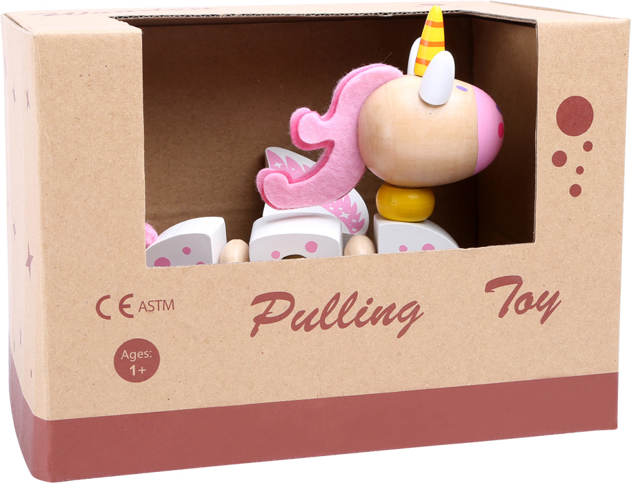 Αυτό το pull-along παιχνίδι τρέχει σε στρογγυλές ρόδες. Τα κινητά τμήματα συγκρατούνται μεταξύ τους με λάστιχα. Όταν τραβιέται ο μονόκερος, ολόκληρο το σώμα του ταλαντεύεται, προς μεγάλη χαρά των μικρών παιδιών! Διάσταση: 21 x 16 x 15 cm